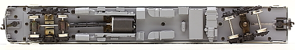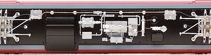 空気作用管を銅色に筆彩色し、前後灯をダミーレンズに換えておりそれらの部分にコーティングがけをしている。